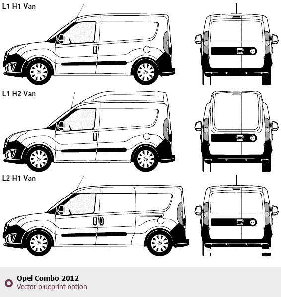 Raster blueprint of the 2012 Opel Combo Tag. This free downloadable image can be used for graphic projects, digital design, and 3D modeling. The file provides accurate exterior proportions of the vehicle. Model year: 2012. Body type: Tag.