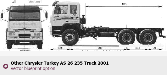 Raster blueprint of the 2001 Other Chrysler Turkey AS 26 235 Truck Heavy Truck. This free downloadable image can be used for graphic projects, digital design, and 3D modeling. The file provides accurate exterior proportions of the vehicle. Model year: 2001. Body type: Heavy Truck.