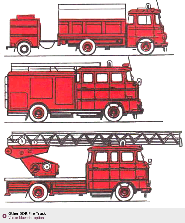 Raster blueprint of the Other DDR Fire Truck Heavy Truck. This free downloadable image can be used for graphic projects, digital design, and 3D modeling. The file provides accurate exterior proportions of the vehicle. Body type: Heavy Truck.
