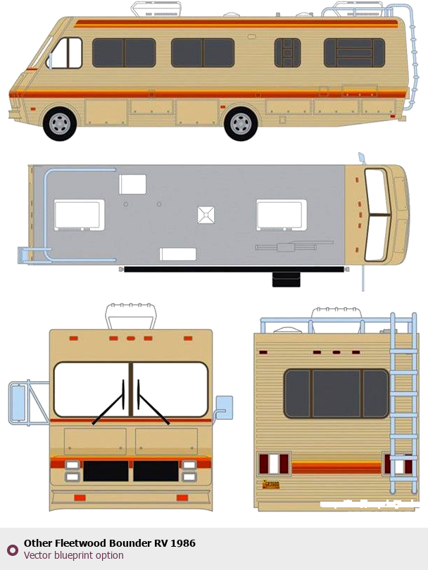 Raster blueprint of the 1986 Other Fleetwood Bounder RV Heavy Truck. This free downloadable image can be used for graphic projects, digital design, and 3D modeling. The file provides accurate exterior proportions of the vehicle. Model year: 1986. Body type: Heavy Truck.