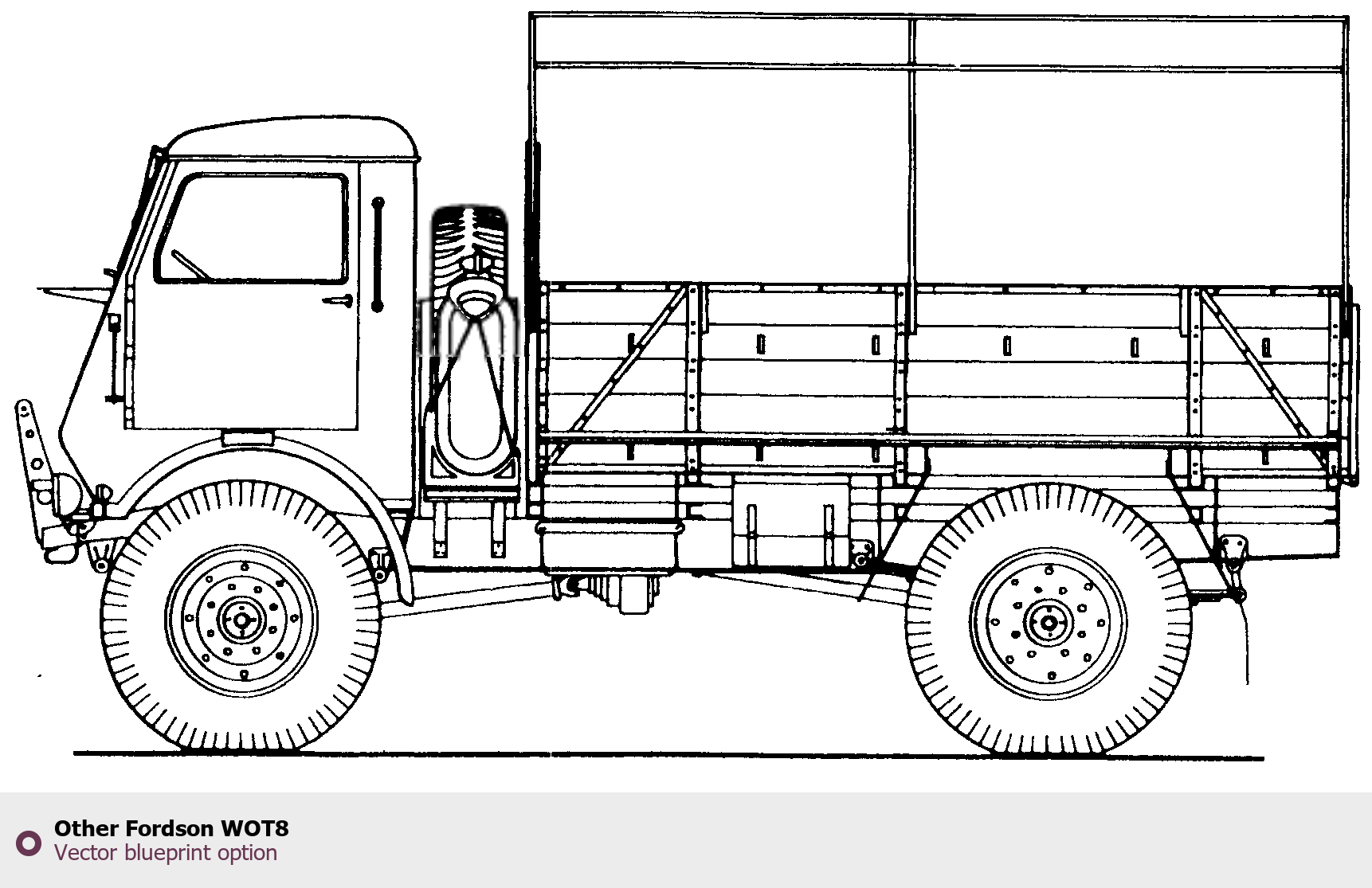 Raster blueprint of the Other Fordson WOT8 Heavy Truck. This free downloadable image can be used for graphic projects, digital design, and 3D modeling. The file provides accurate exterior proportions of the vehicle. Body type: Heavy Truck.