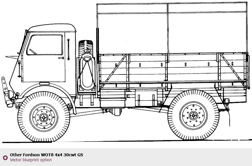 Raster blueprint of the Other Fordson WOT8 4x4 30cwt GS Heavy Truck. This free downloadable image can be used for graphic projects, digital design, and 3D modeling. The file provides accurate exterior proportions of the vehicle. Body type: Heavy Truck.