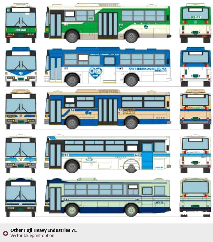 Raster blueprint of the Other Fuji Heavy Industries 7E Bus. This free downloadable image can be used for graphic projects, digital design, and 3D modeling. The file provides accurate exterior proportions of the vehicle. Body type: Bus.