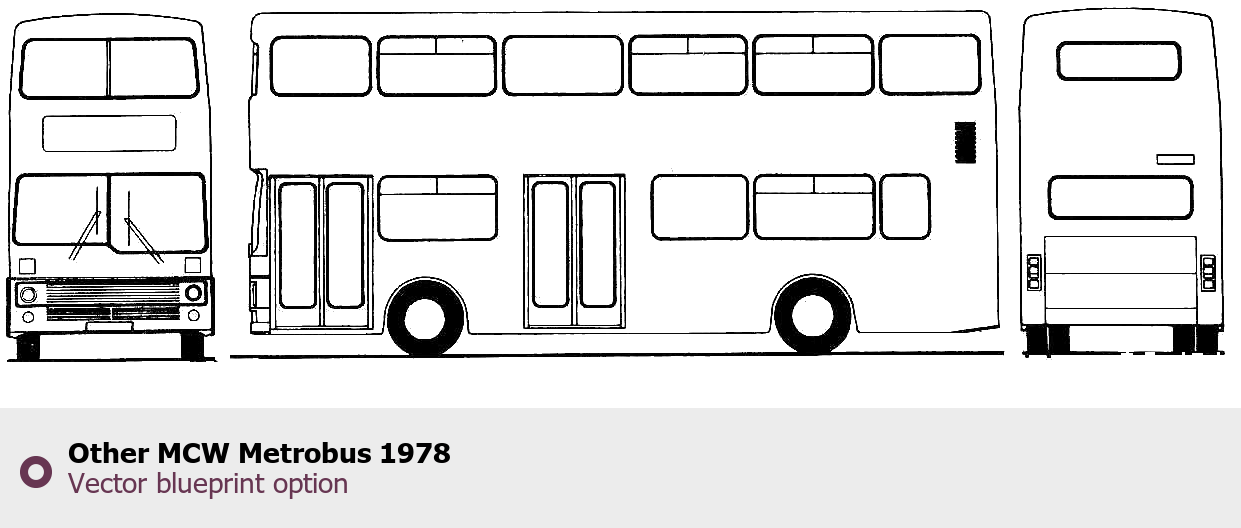 Raster blueprint of the 1978 Other MCW Metrobus Bus. This free downloadable image can be used for graphic projects, digital design, and 3D modeling. The file provides accurate exterior proportions of the vehicle. Model year: 1978. Body type: Bus.