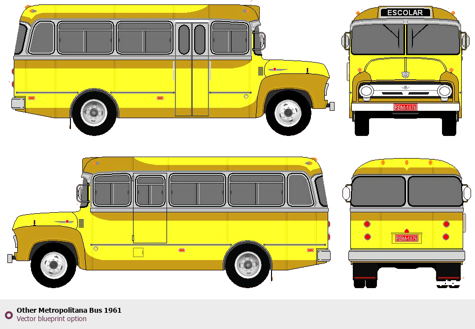Raster blueprint of the 1961 Other Metropolitana Bus Bus. This free downloadable image can be used for graphic projects, digital design, and 3D modeling. The file provides accurate exterior proportions of the vehicle. Model year: 1961. Body type: Bus.