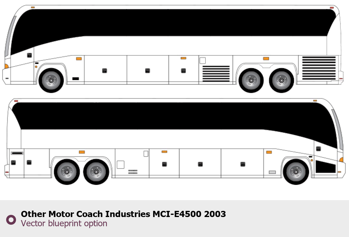 Raster blueprint of the 2003 Other Motor Coach Industries MCI-E4500 Bus. This free downloadable image can be used for graphic projects, digital design, and 3D modeling. The file provides accurate exterior proportions of the vehicle. Model year: 2003. Body type: Bus.