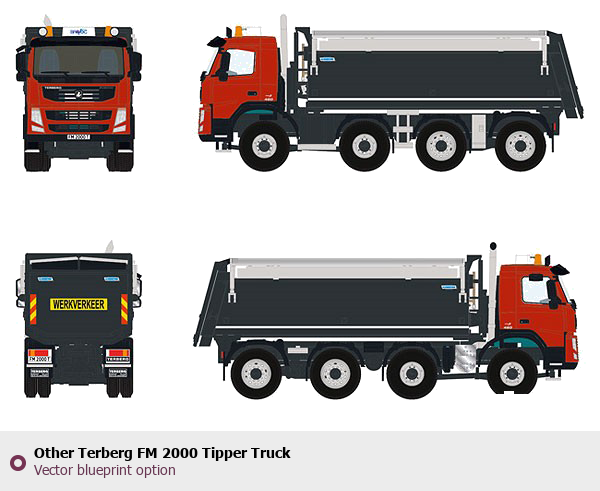 Raster blueprint of the Other Terberg FM 2000 Tipper Truck Heavy Truck. This free downloadable image can be used for graphic projects, digital design, and 3D modeling. The file provides accurate exterior proportions of the vehicle. Body type: Heavy Truck.