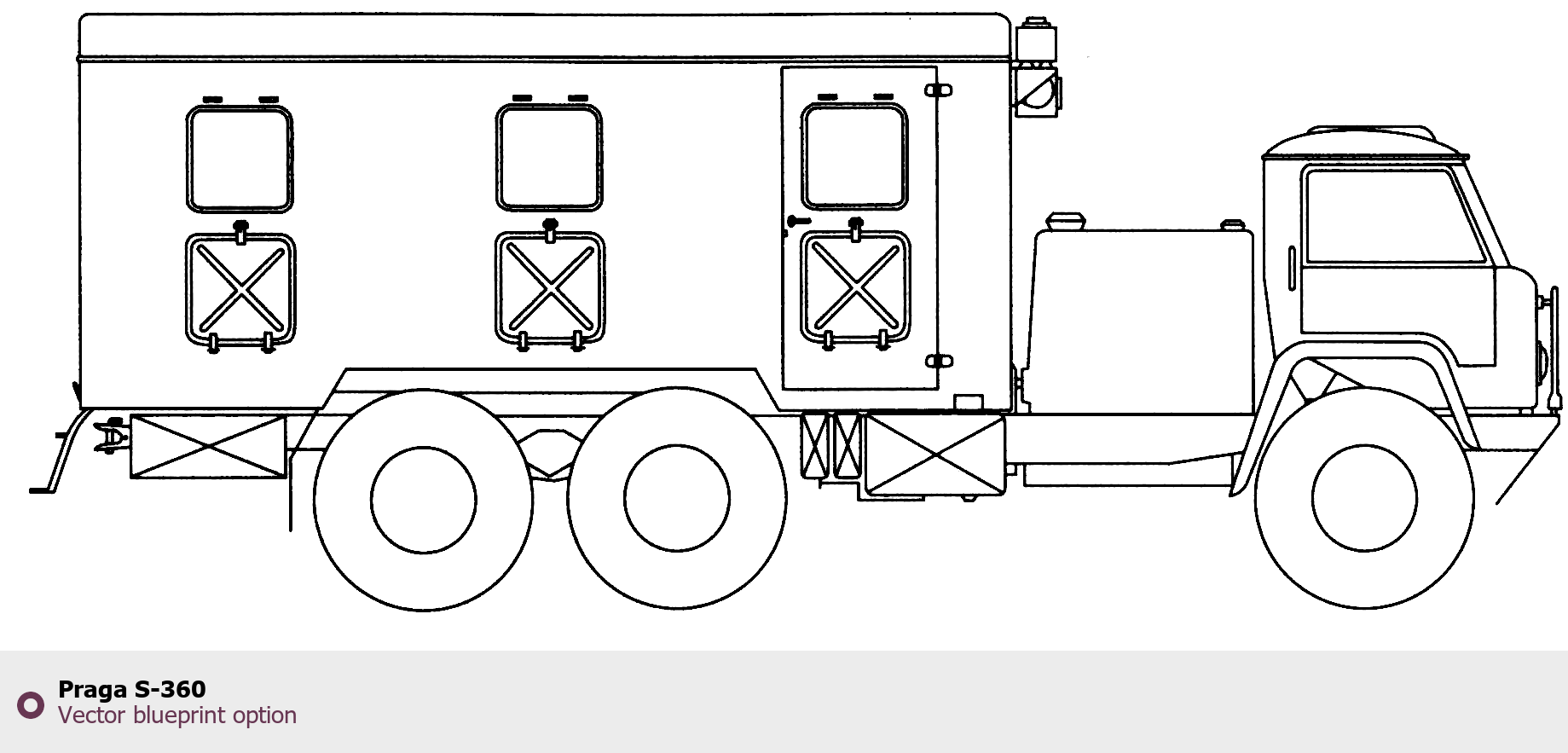Raster blueprint of the Praga S-360 Heavy Truck. This free downloadable image can be used for graphic projects, digital design, and 3D modeling. The file provides accurate exterior proportions of the vehicle. Body type: Heavy Truck.