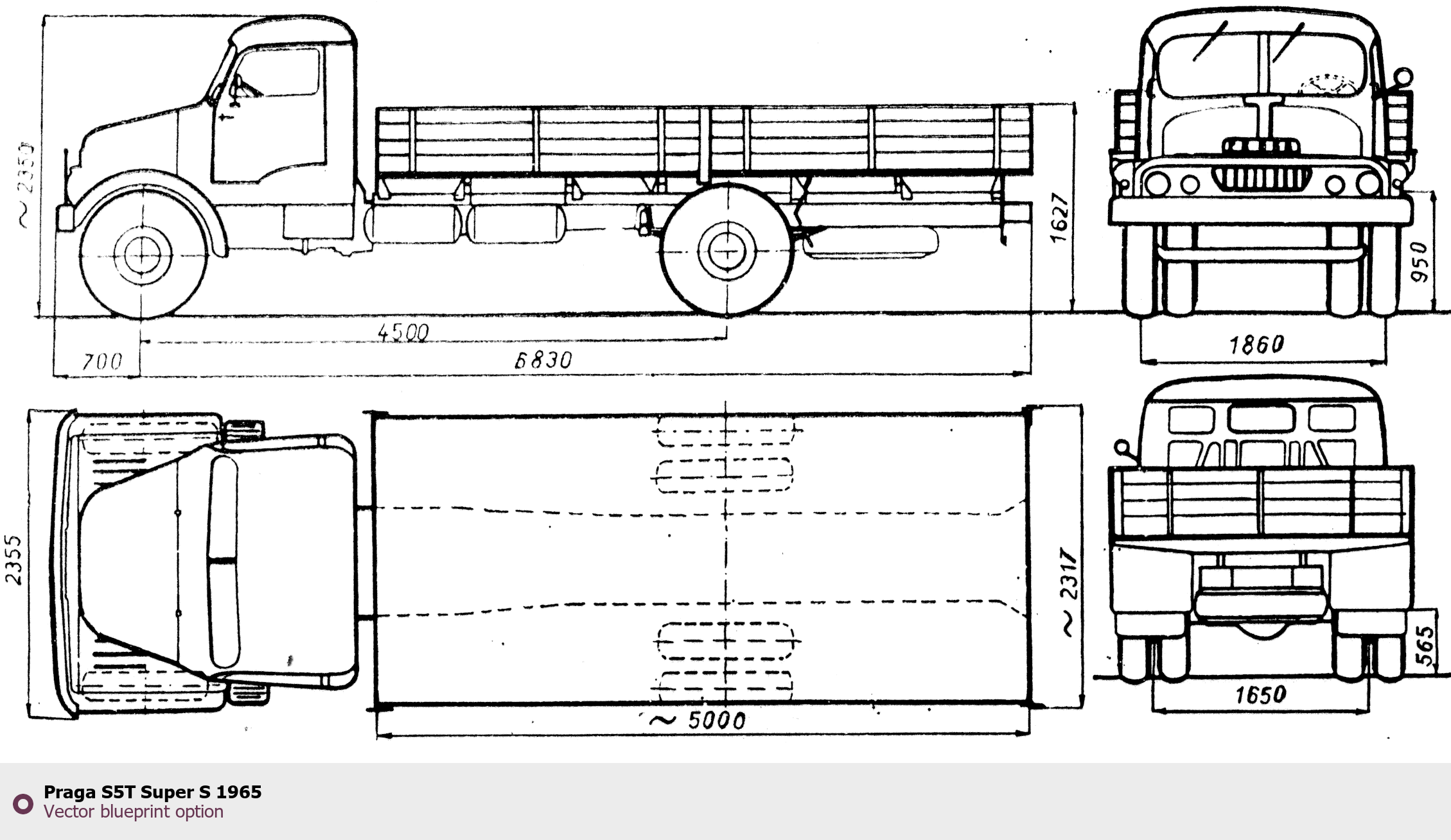 Raster blueprint of the 1965 Praga S5T Super S Heavy Truck. This free downloadable image can be used for graphic projects, digital design, and 3D modeling. The file provides accurate exterior proportions of the vehicle. Model year: 1965. Body type: Heavy Truck.