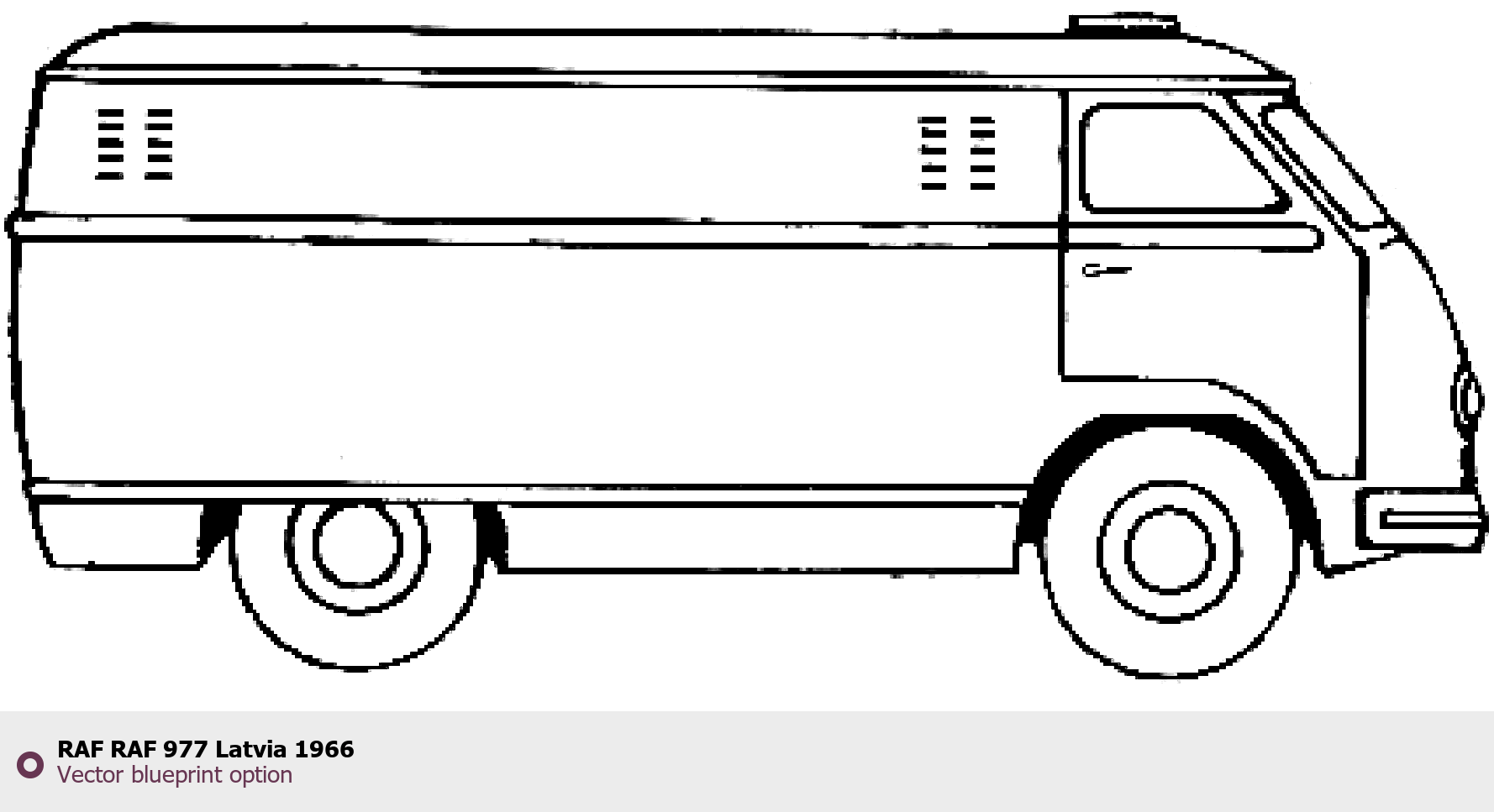 Raster blueprint of the 1966 RAF 977 Latvia Tag. This free downloadable image can be used for graphic projects, digital design, and 3D modeling. The file provides accurate exterior proportions of the vehicle. Model year: 1966. Body type: Tag.