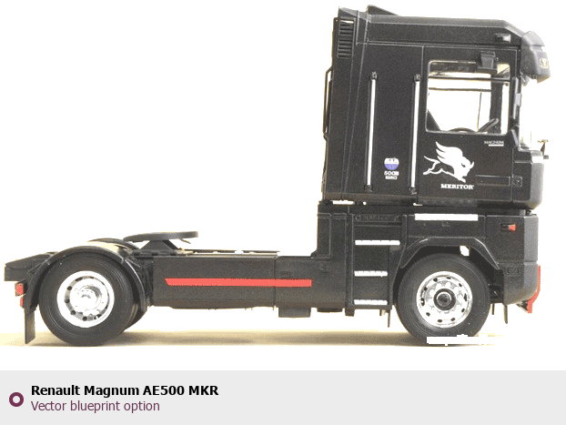 Raster blueprint of the Renault Magnum AE500 MKR Heavy Truck. This free downloadable image can be used for graphic projects, digital design, and 3D modeling. The file provides accurate exterior proportions of the vehicle. Body type: Heavy Truck.