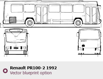 Raster blueprint of the 1992 Renault PR100-2 Bus. This free downloadable image can be used for graphic projects, digital design, and 3D modeling. The file provides accurate exterior proportions of the vehicle. Model year: 1992. Body type: Bus.