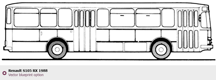 Raster blueprint of the 1988 Renault S105 RX Bus. This free downloadable image can be used for graphic projects, digital design, and 3D modeling. The file provides accurate exterior proportions of the vehicle. Model year: 1988. Body type: Bus.