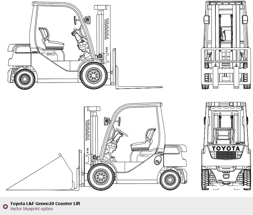Raster blueprint of the Toyota L&F Geneo20 Counter Lift Heavy Truck. This free downloadable image can be used for graphic projects, digital design, and 3D modeling. The file provides accurate exterior proportions of the vehicle. Body type: Heavy Truck.