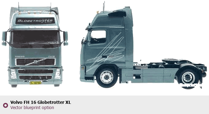 Raster blueprint of the Volvo FH 16 Globetrotter XL Heavy Truck. This free downloadable image can be used for graphic projects, digital design, and 3D modeling. The file provides accurate exterior proportions of the vehicle. Body type: Heavy Truck.