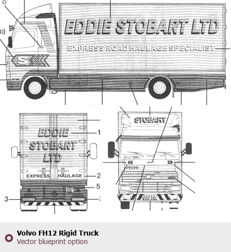 Raster blueprint of the Volvo FH12 Rigid Truck Heavy Truck. This free downloadable image can be used for graphic projects, digital design, and 3D modeling. The file provides accurate exterior proportions of the vehicle. Body type: Heavy Truck.
