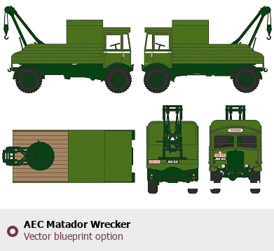 Raster blueprint of the AEC Matador Wrecker Heavy Truck. This free downloadable image can be used for graphic projects, digital design, and 3D modeling. The file provides accurate exterior proportions of the vehicle. Body type: Heavy Truck.
