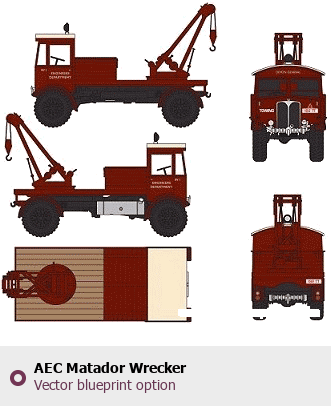 Raster blueprint of the AEC Matador Wrecker Heavy Truck. This free downloadable image can be used for graphic projects, digital design, and 3D modeling. The file provides accurate exterior proportions of the vehicle. Body type: Heavy Truck.