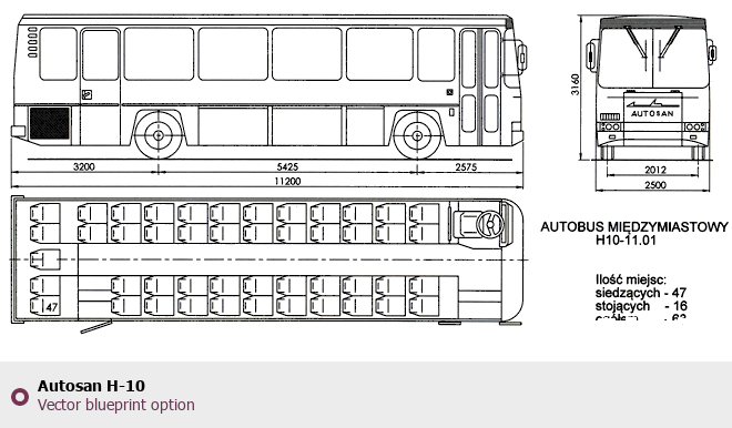 Raster blueprint of the Autosan H-10 Bus. This free downloadable image can be used for graphic projects, digital design, and 3D modeling. The file provides accurate exterior proportions of the vehicle. Body type: Bus.