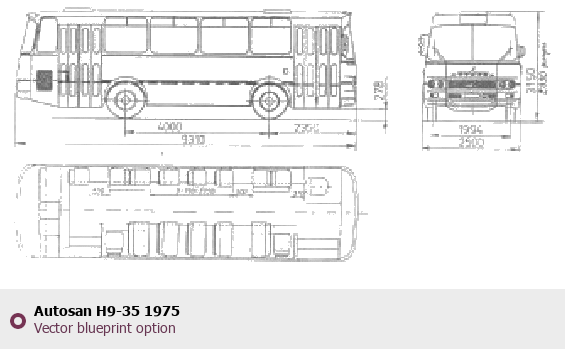 Raster blueprint of the 1975 Autosan H9-35 Bus. This free downloadable image can be used for graphic projects, digital design, and 3D modeling. The file provides accurate exterior proportions of the vehicle. Model year: 1975. Body type: Bus.