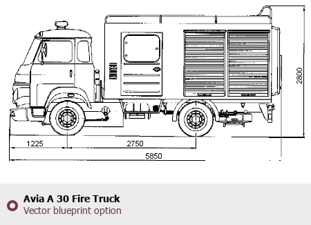 Raster blueprint of the Avia A 30 Fire Truck Heavy Truck. This free downloadable image can be used for graphic projects, digital design, and 3D modeling. The file provides accurate exterior proportions of the vehicle. Body type: Heavy Truck.