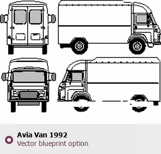 Raster blueprint of the 1992 Avia Van Van. This free downloadable image can be used for graphic projects, digital design, and 3D modeling. The file provides accurate exterior proportions of the vehicle. Model year: 1992. Body type: Van.