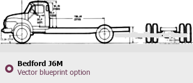 Raster blueprint of the Bedford J6M Heavy Truck. This free downloadable image can be used for graphic projects, digital design, and 3D modeling. The file provides accurate exterior proportions of the vehicle. Body type: Heavy Truck.