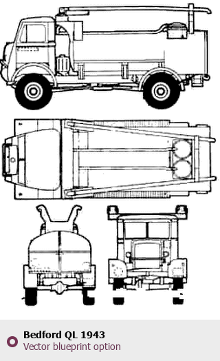 Raster blueprint of the 1943 Bedford QL Heavy Truck. This free downloadable image can be used for graphic projects, digital design, and 3D modeling. The file provides accurate exterior proportions of the vehicle. Model year: 1943. Body type: Heavy Truck.