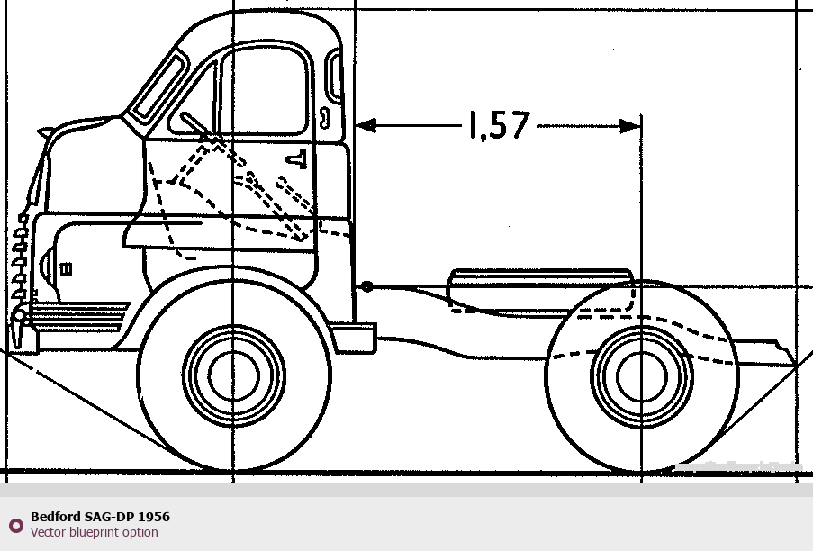 Raster blueprint of the 1956 Bedford SAG-DP Heavy Truck. This free downloadable image can be used for graphic projects, digital design, and 3D modeling. The file provides accurate exterior proportions of the vehicle. Model year: 1956. Body type: Heavy Truck.