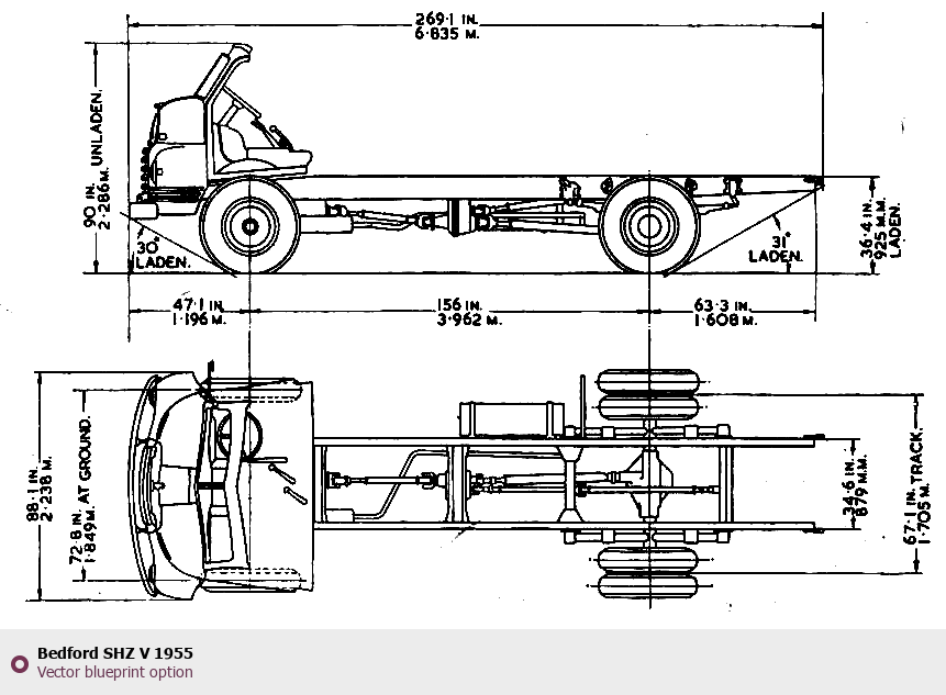 Raster blueprint of the Bedford SHZ V 1955 Heavy Truck. This free downloadable image can be used for graphic projects, digital design, and 3D modeling. The file provides accurate exterior proportions of the vehicle. Body type: Heavy Truck.