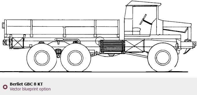 Raster blueprint of the Berliet GBC 8 KT Heavy Truck. This free downloadable image can be used for graphic projects, digital design, and 3D modeling. The file provides accurate exterior proportions of the vehicle. Body type: Heavy Truck.