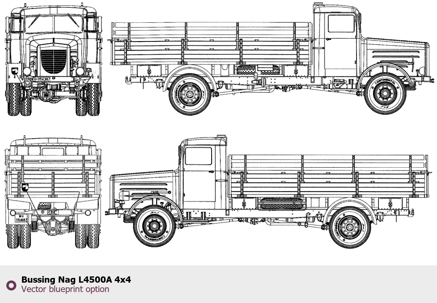 Raster blueprint of the Bussing Nag L4500A 4X4 Heavy Truck. This free downloadable image can be used for graphic projects, digital design, and 3D modeling. The file provides accurate exterior proportions of the vehicle. Body type: Heavy Truck.