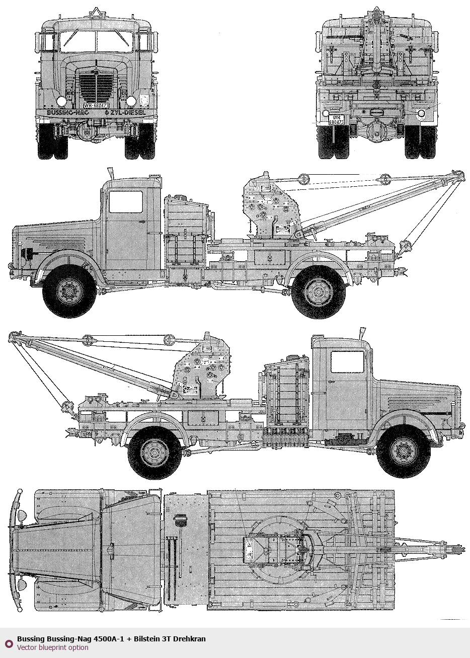 Raster blueprint of the Bussing Bussing-Nag 4500A-1 + Bilstein 3T Drehkran Heavy Truck. This free downloadable image can be used for graphic projects, digital design, and 3D modeling. The file provides accurate exterior proportions of the vehicle. Body type: Heavy Truck.