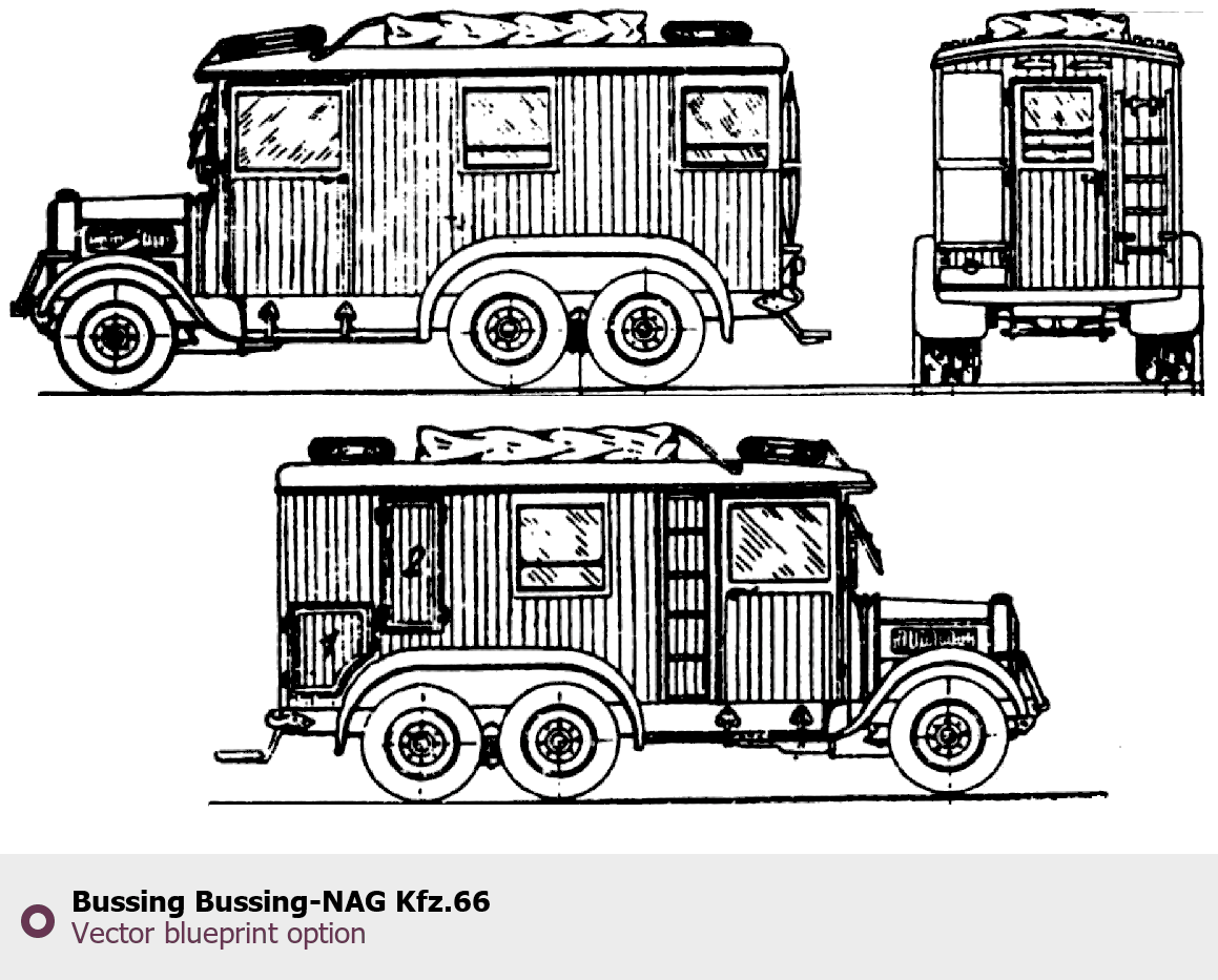 Raster blueprint of the Bussing Bussing-NAG Kfz.66 Heavy Truck. This free downloadable image can be used for graphic projects, digital design, and 3D modeling. The file provides accurate exterior proportions of the vehicle. Body type: Heavy Truck.