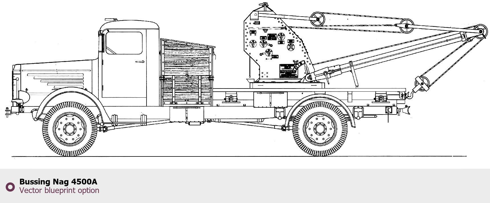 Raster blueprint of the Bussing Nag 4500A Heavy Truck. This free downloadable image can be used for graphic projects, digital design, and 3D modeling. The file provides accurate exterior proportions of the vehicle. Body type: Heavy Truck.