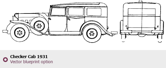 Raster blueprint of the 1931 Checker Cab Tag. This free downloadable image can be used for graphic projects, digital design, and 3D modeling. The file provides accurate exterior proportions of the vehicle. Model year: 1931. Body type: Tag.