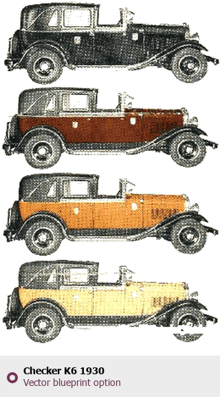 Raster blueprint of the 1930 Checker K6 Tag. This free downloadable image can be used for graphic projects, digital design, and 3D modeling. The file provides accurate exterior proportions of the vehicle. Model year: 1930. Body type: Tag.