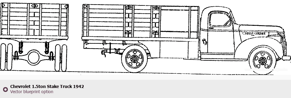 Raster blueprint of the 1942 Chevrolet 1.5ton Stake Truck Heavy Truck. This free downloadable image can be used for graphic projects, digital design, and 3D modeling. The file provides accurate exterior proportions of the vehicle. Model year: 1942. Body type: Heavy Truck.