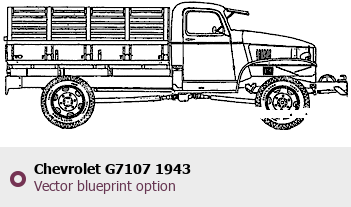 Raster blueprint of the Chevrolet G7107 1943 Heavy Truck. This free downloadable image can be used for graphic projects, digital design, and 3D modeling. The file provides accurate exterior proportions of the vehicle. Body type: Heavy Truck.