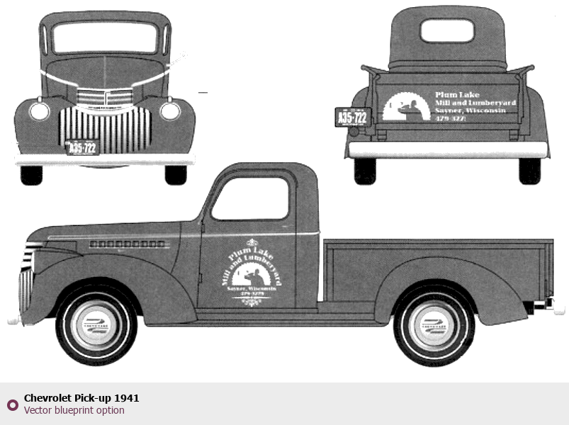 Raster blueprint of the 1941 Chevrolet Pick-up Pickup Truck. This free downloadable image can be used for graphic projects, digital design, and 3D modeling. The file provides accurate exterior proportions of the vehicle. Model year: 1941. Body type: Pickup Truck.