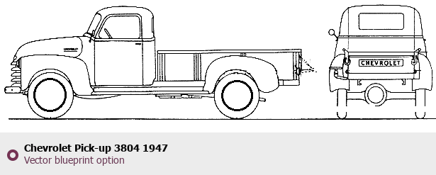 Raster blueprint of the 1947 Chevrolet Pick-up 3804 Pickup Truck. This free downloadable image can be used for graphic projects, digital design, and 3D modeling. The file provides accurate exterior proportions of the vehicle. Model year: 1947. Body type: Pickup Truck.