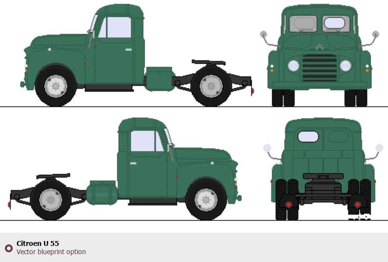 Raster blueprint of the Citroen U 55 Heavy Truck. This free downloadable image can be used for graphic projects, digital design, and 3D modeling. The file provides accurate exterior proportions of the vehicle. Body type: Heavy Truck.