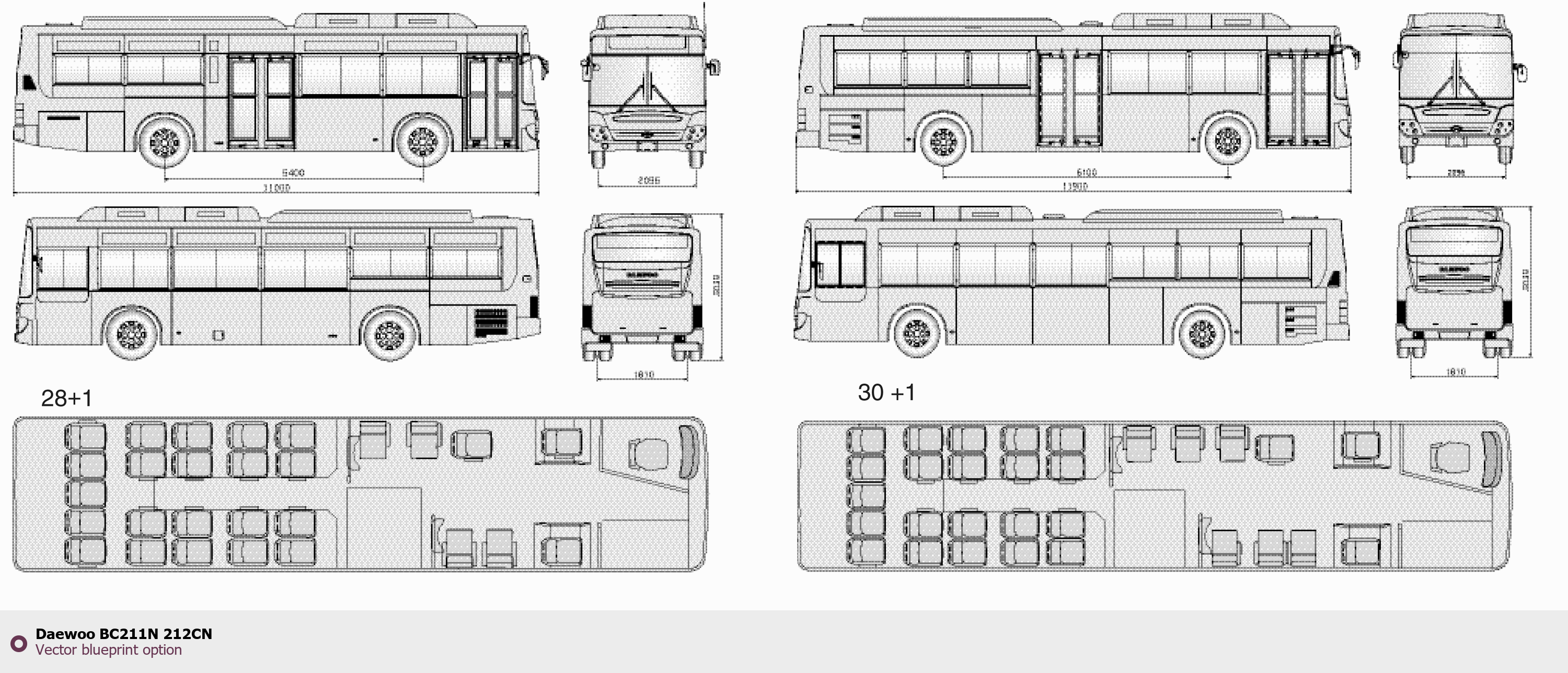 Raster blueprint of the Daewoo BC211N 212CN Bus. This free downloadable image can be used for graphic projects, digital design, and 3D modeling. The file provides accurate exterior proportions of the vehicle. Body type: Bus.