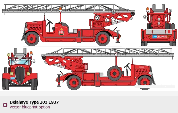 Raster blueprint of the 1937 Delahaye Type 103 Heavy Truck. This free downloadable image can be used for graphic projects, digital design, and 3D modeling. The file provides accurate exterior proportions of the vehicle. Model year: 1937. Body type: Heavy Truck.