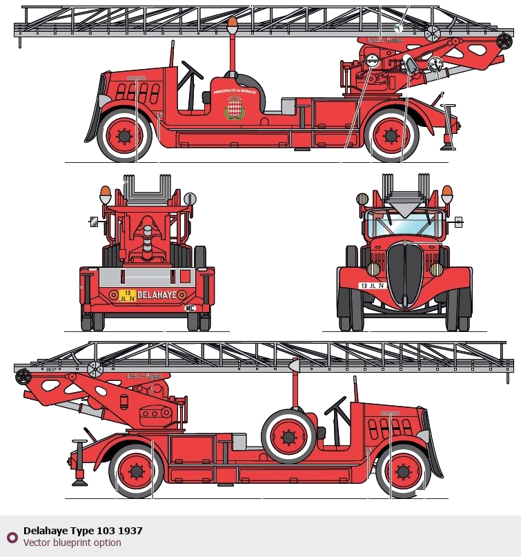 Raster blueprint of the 1937 Delahaye Type 103 Heavy Truck. This free downloadable image can be used for graphic projects, digital design, and 3D modeling. The file provides accurate exterior proportions of the vehicle. Model year: 1937. Body type: Heavy Truck.