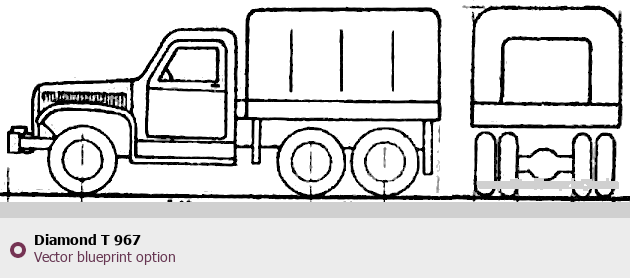 Raster blueprint of the Diamond T 967 Heavy Truck. This free downloadable image can be used for graphic projects, digital design, and 3D modeling. The file provides accurate exterior proportions of the vehicle. Body type: Heavy Truck.