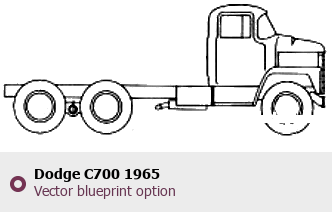Raster blueprint of the 1965 Dodge C700 Heavy Truck. This free downloadable image can be used for graphic projects, digital design, and 3D modeling. The file provides accurate exterior proportions of the vehicle. Model year: 1965. Body type: Heavy Truck.