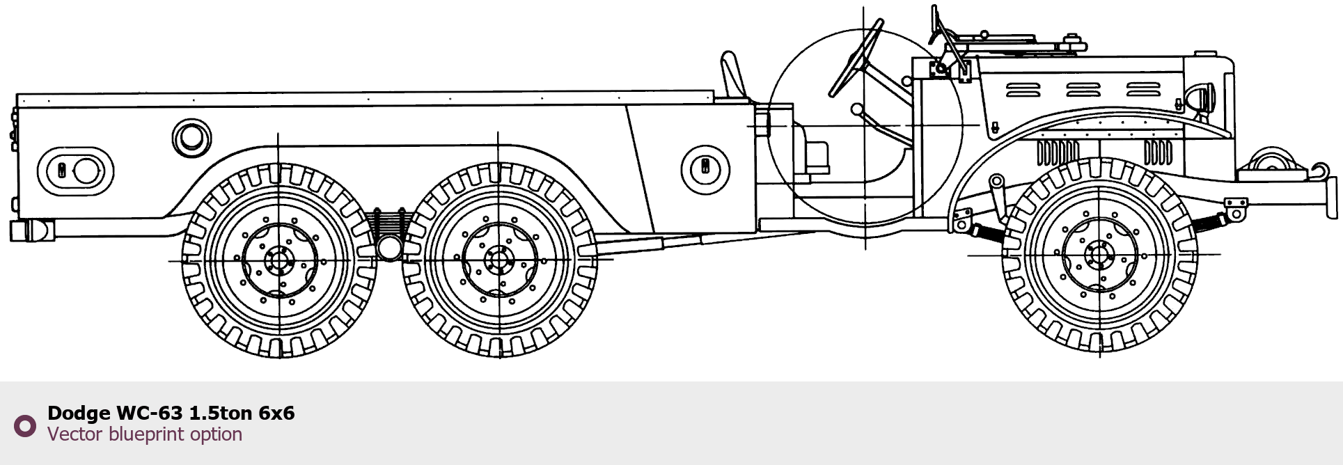 Raster blueprint of the Dodge WC-63 1.5ton 6x6 Heavy Truck. This free downloadable image can be used for graphic projects, digital design, and 3D modeling. The file provides accurate exterior proportions of the vehicle. Body type: Heavy Truck.