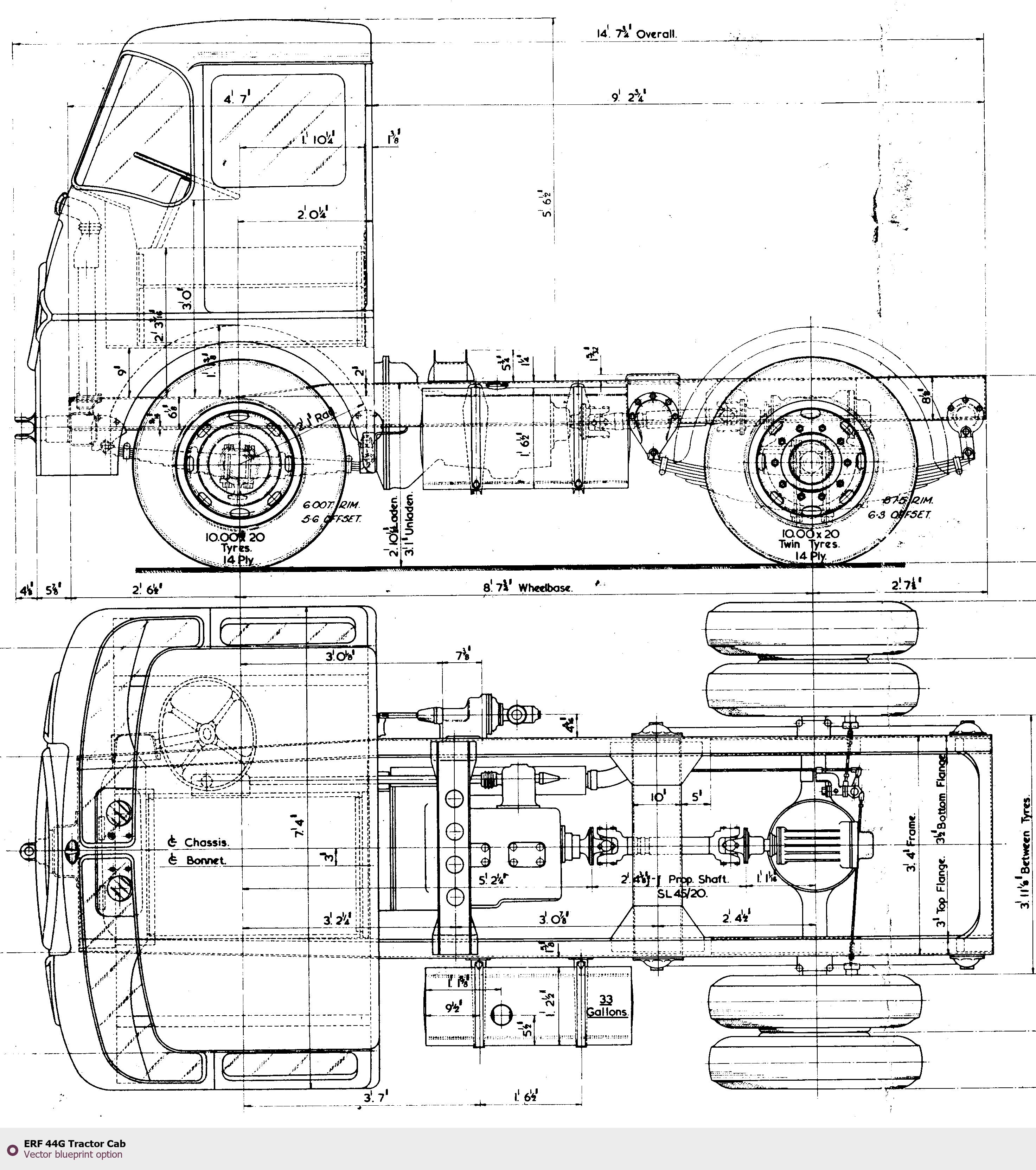 Raster blueprint of the ERF 44G Tractor Cab Heavy Truck. This free downloadable image can be used for graphic projects, digital design, and 3D modeling. The file provides accurate exterior proportions of the vehicle. Body type: Heavy Truck.