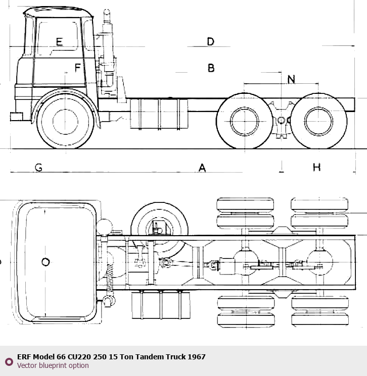 Raster blueprint of the 1967 ERF Model 66 CU220 250 15 Ton Tandem Truck Heavy Truck. This free downloadable image can be used for graphic projects, digital design, and 3D modeling. The file provides accurate exterior proportions of the vehicle. Model year: 1967. Body type: Heavy Truck.